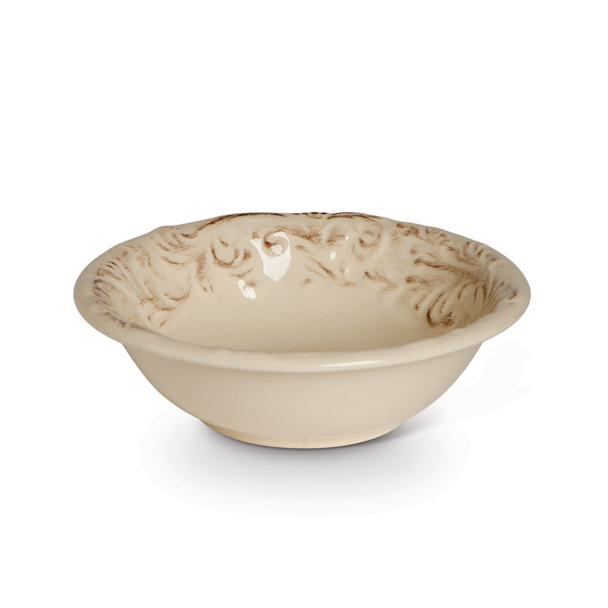 - Acanthus Leaf is embossed in a lacy motif on these cream ceramic bowls