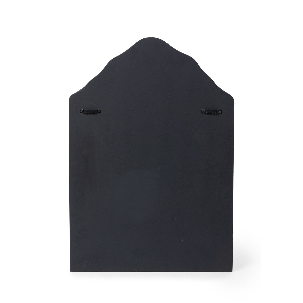 Annette Etched Mirror is beautifully accented by a floral motif along its scalloped crest. This detail is etched under the final layer of glass, making the surface smooth to the touch. Conversely, its beveled edge is textured, adding to the refraction. Finished with a charming antiqued speckling, this dainty piece appears frameless with its metal surround affixed flush to the curved border.