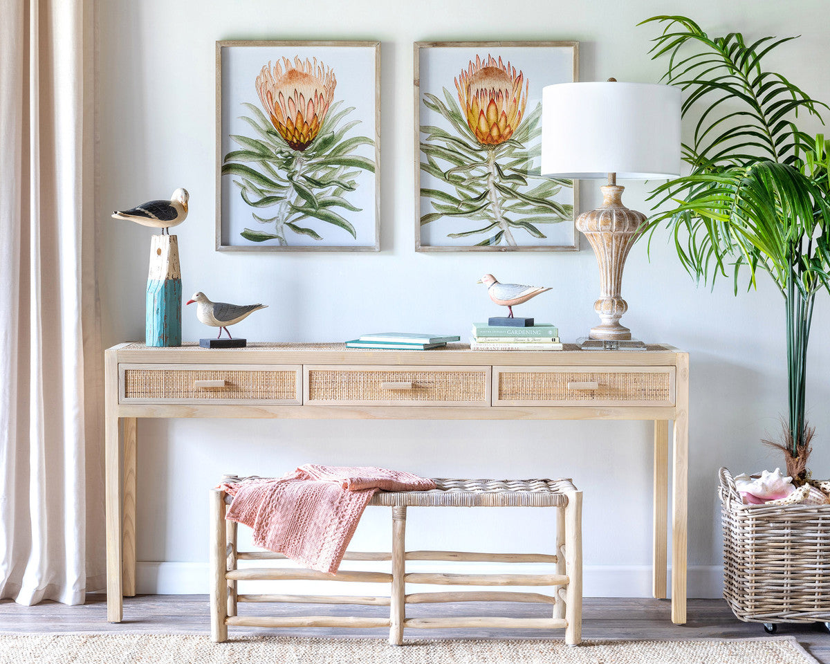 - Color & Finish: Distressed and antiqued white, turqoise and black