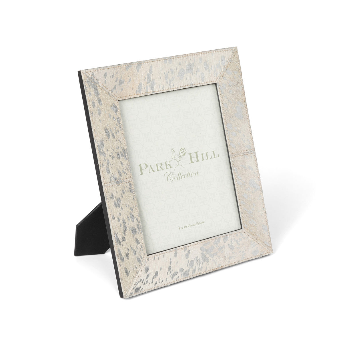 Modern and organic, these paint-spattered hair-on-hide picture frames are a unique and interesting way to display your photo memories while adding a panache to your bookshelf or desktop. Use alone or with the other sizes to complete your gallery. They also make excellent gifts.