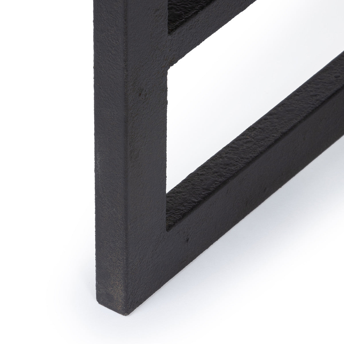 - Top is finished by sanding and with a light application of wax. Lacquerred iron and applied with painting pigments to achieve the rustic appearance