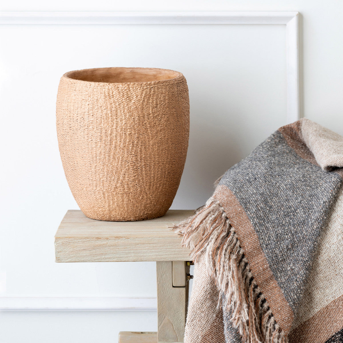 The Seagrass Relief Pattern collection of pots makes the popular braided texture a permanent look for your garden. By removing the worries of frayed edges and deteriorating seagrass, these containers bring the coast to your botanicals, wherever you may have planted your roots. Our handmade 10” pot is the perfect size for small herbs or a trio of annuals. Crafted from a combination of cement and sand for an added layer of texture and color, this planter comes with a drainage hole for outdoor use.