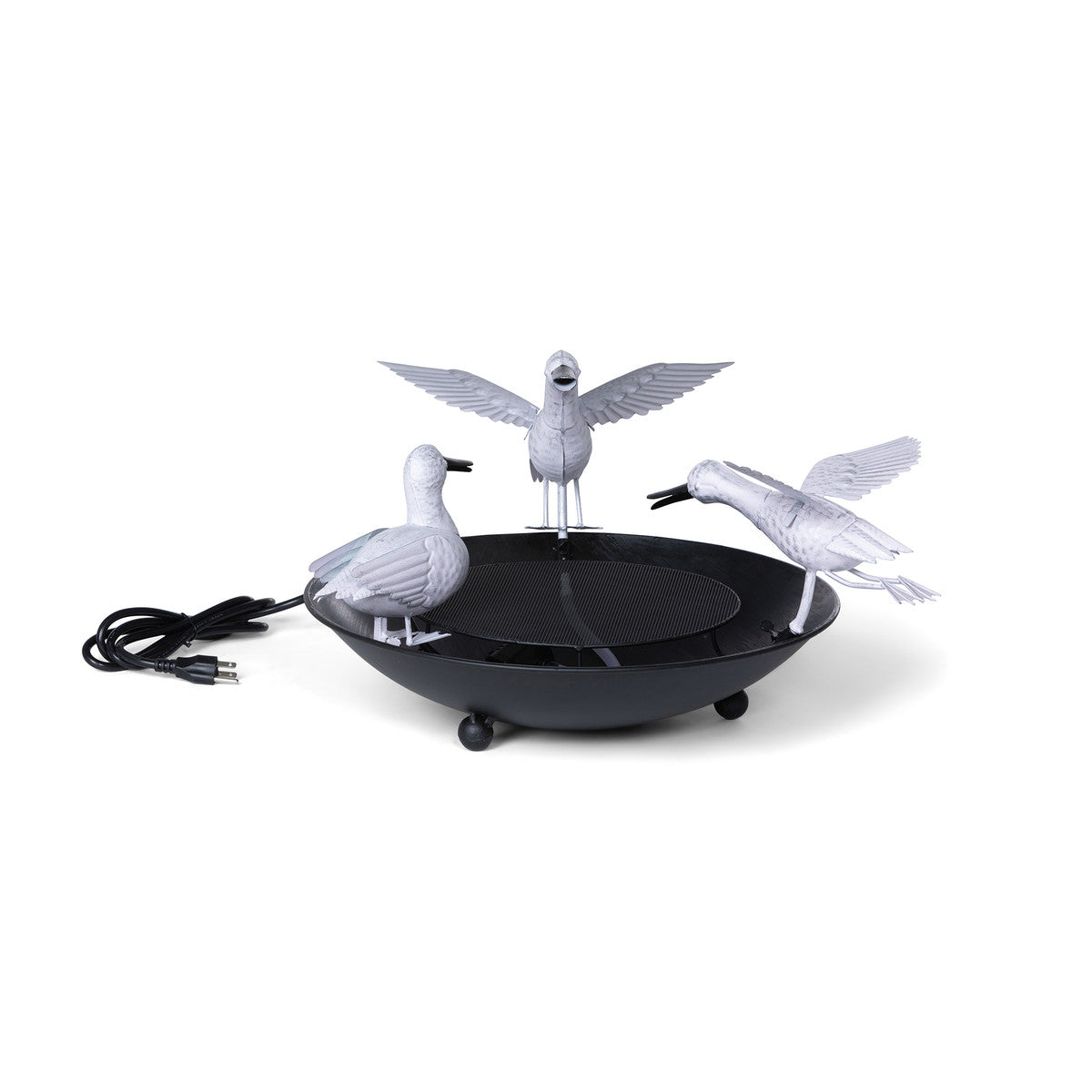 Splashing Duckling Garden Fountain will invite fun alongside tranquility to an outdoor oasis. This playful trio of white ducklings depicts the birds in different stages of splash landing into the metal bowl while water trickles from their beaks to create a soothing dribble.