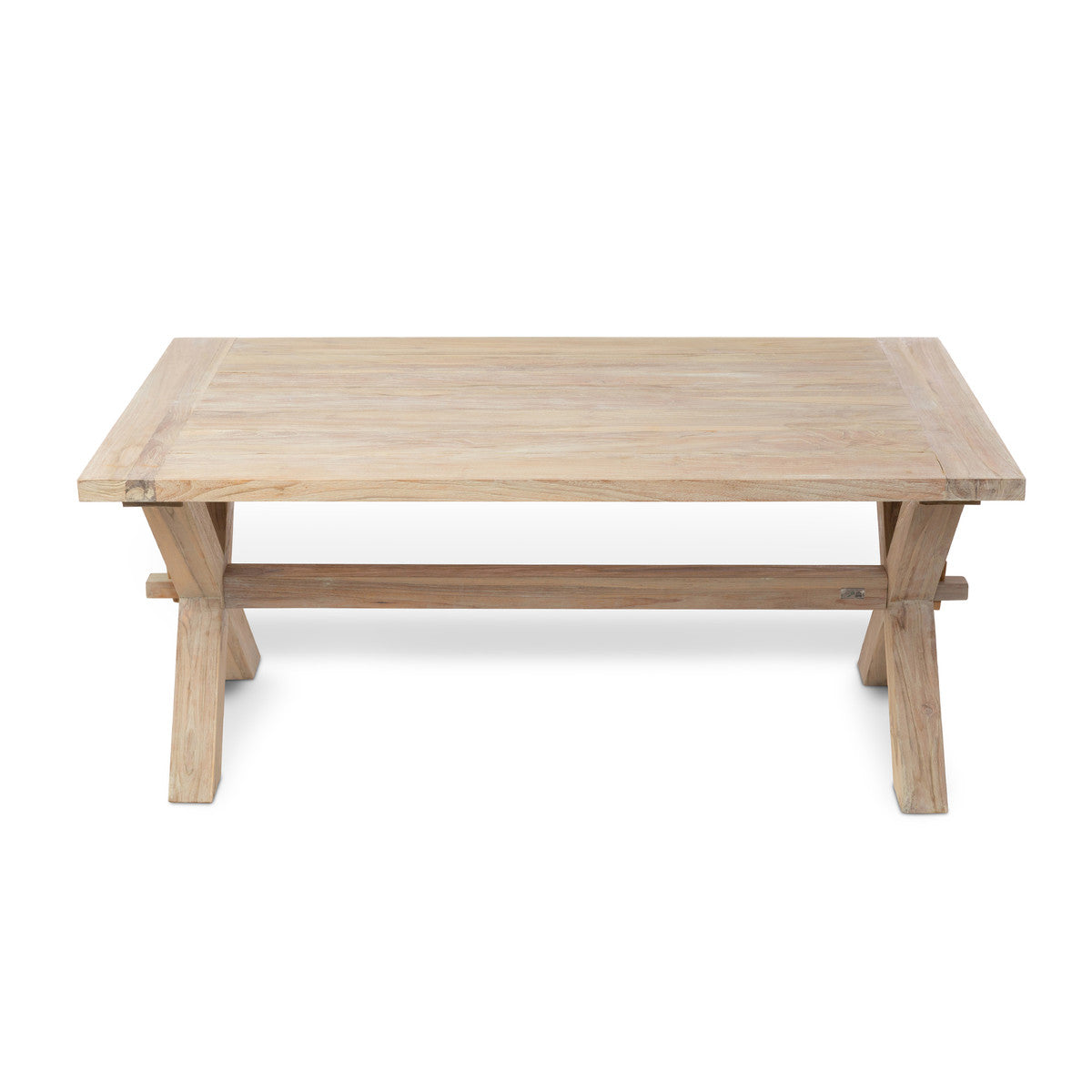Made of solid teak, the Teak Outdoor Clambake Table features x-base trestle legs with slatted top.
