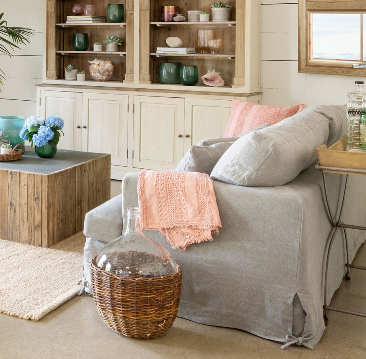 A simple yet interesting decorative element, this thick glass bottle is covered with unpeeled natural willow.
